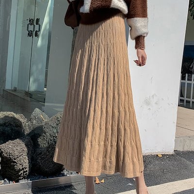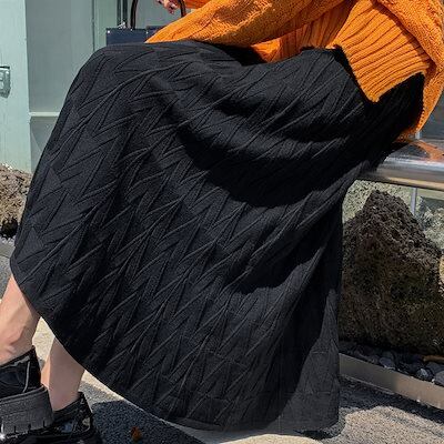 ニットスカート韓国ファッション秋冬百掛け ロングスカート タイトスカート プリーツスカート レディースプリーツAラインハイウエストロングスカートマキシスカート