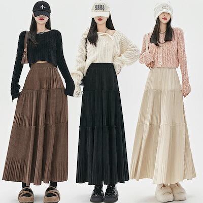 【高/品/質】秋冬式スカート ロングワンピース気質おしゃれスカートプリーツスカート スカート ワンピース 大きめサイズ 韓国ファッション