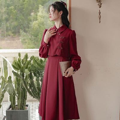 レトロ チャイナドレス ワンピース レディース 2024新作 ヤング ガーリー 長袖 高級感 スカート 冬のワンピース ワンピースワンピース ドレス ワンピース 秋冬 パーティードレス ロングワンピー | KAGEYAMA-SECOND