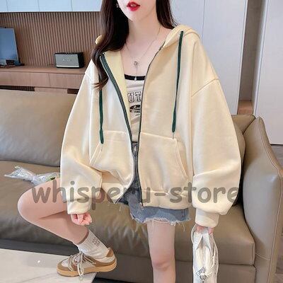 パーカー レディース フード付き ジップパーカー シンプル 秋 きれいめ アウター 長袖 体型カバー ゆったり