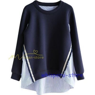 トレーナー レディース 春秋 トップス シャツ 切り替え カワイイ 長袖 Tシャツ 前後差 ゆったり 20代30代 レイヤード 重ね着風 女の子 ストライプ 無地 大人 | KAGEYAMA-SECOND