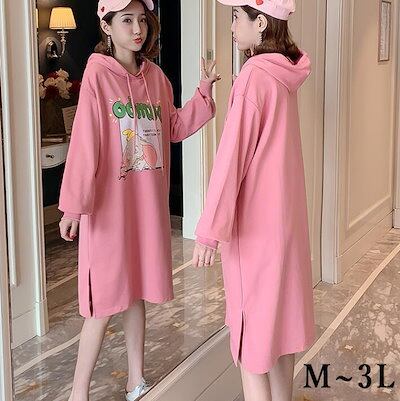 サイトスリット パーカー ロゴ ロングパーカー パーカーワンピース トレーナー スウェット スエット ロング レディース 長袖 ゆったり オーバーサイズ フード付き マタニティ 春秋冬 M L 2 | KAGEYAMA-SECOND
