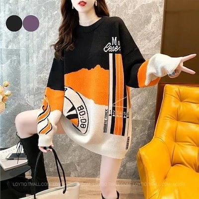 ニット セーター ロゴ プリント オーバーサイズ カジュアル トップス レディース ロゴニット クルーネック ビッグシルエット 大きめ 長袖 ゆったり 着痩せ 春秋冬 | KAGEYAMA-SECOND