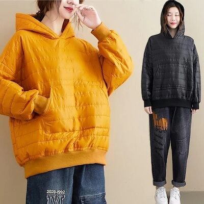 パーカー ラムレザー風 綿入れ フード ポケット付き 切り替え レディース トップス  大きいサイズ 温かい 軽量 防寒 冬