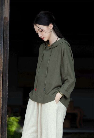 パーカー Tシャツ レディース ブラウス 春 夏 リネン フード付き ガーゼ 長袖パーカーTシャツ シャツブラウス 綿麻トップス 無地 大きいサイズ プルオーバー 着心地 オーバーサイズ 長袖 大人 | KAGEYAMA-SECOND