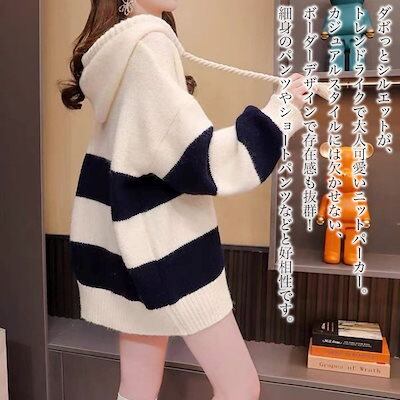 パーカー レディース ルーズボーダーニットパーカー 冬 あったか コーデ 秋 ジャケット オーバーサイズ ジップ ロゴ 韓国 肌着 春 大きいサイズ 大きめ ブランド おしゃれ 人気 長袖 きれいめ | KAGEYAMA-SECOND