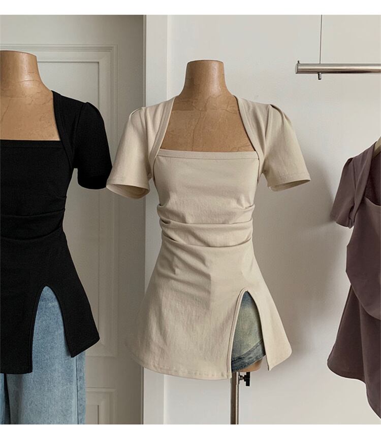 おしゃれと着心地を両立 早い者勝ち 半袖 tシャツ スプリット スクエアネック 上着 トップス スリム