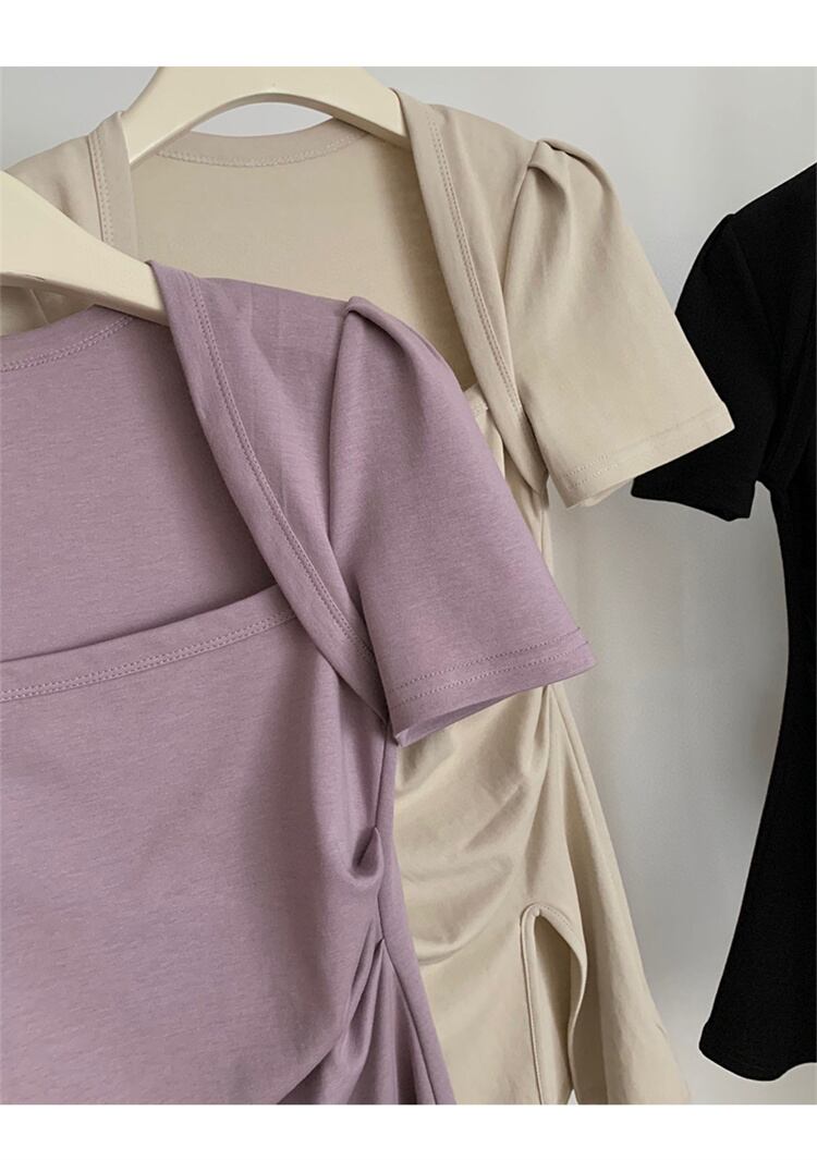 新色が安い スプリット スクエアネック 半袖 tシャツ 上着 トップス スリム ホットガールスタイル