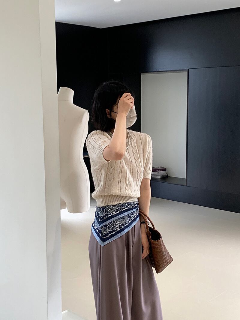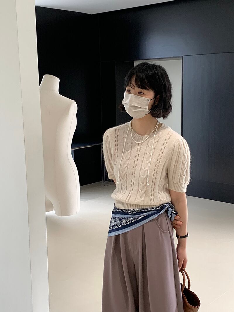 u23960 レディース トップス ニット 半袖 ラウンドネック 2024春新作 カジュア 着痩せ 3色 ショット丈