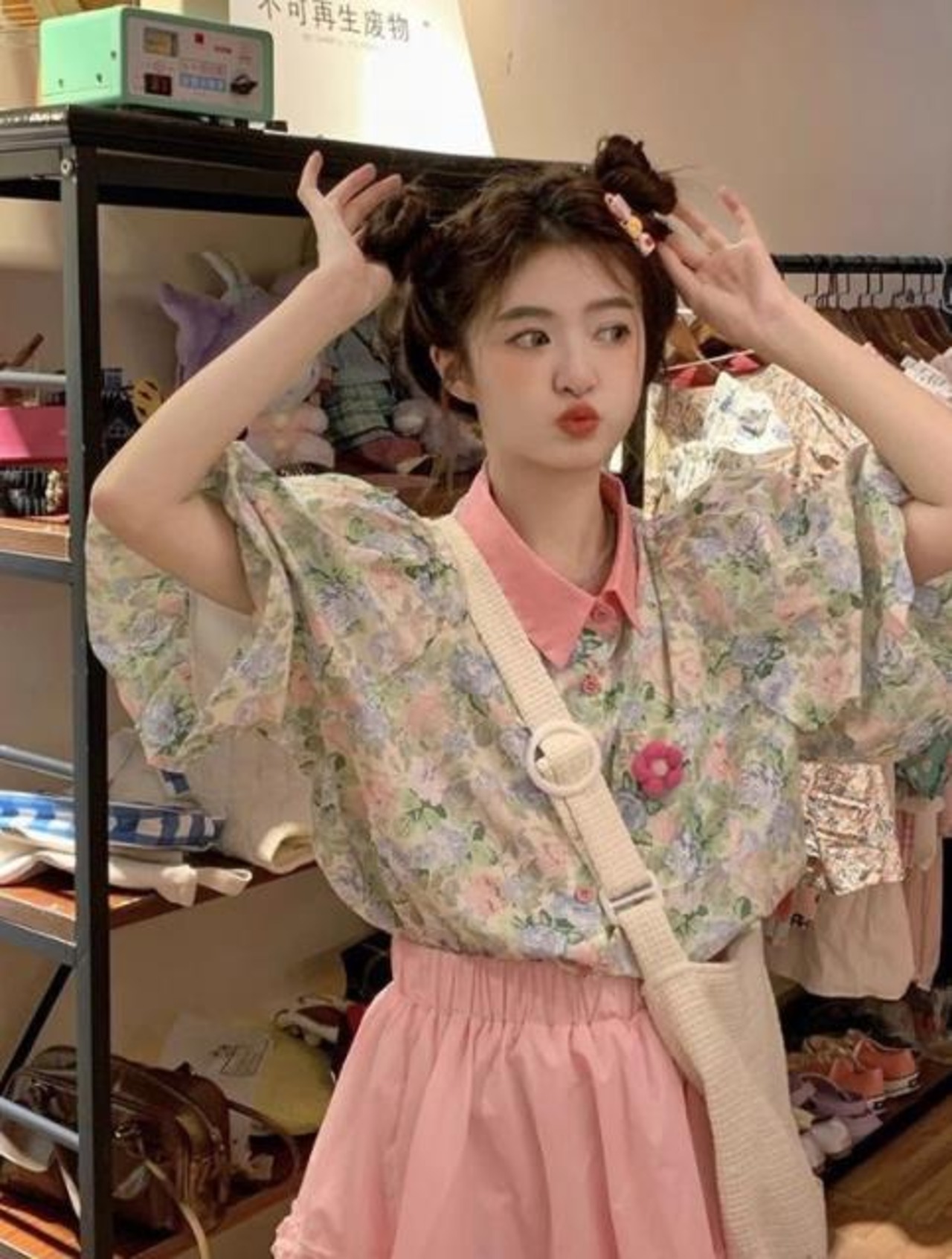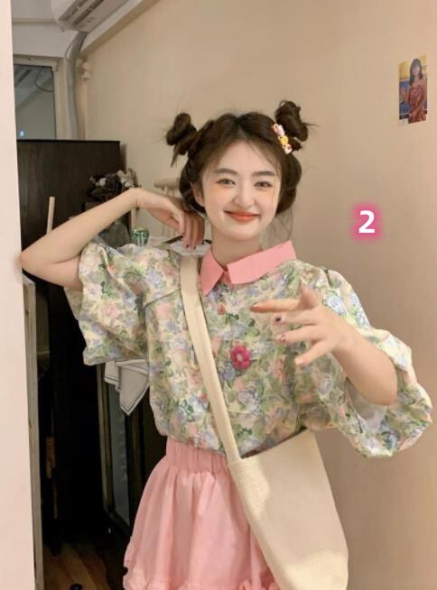2023春夏新作 トップス 女 レディース 半袖 花柄 パフスリーブ シャツ ブラウス コート アウター