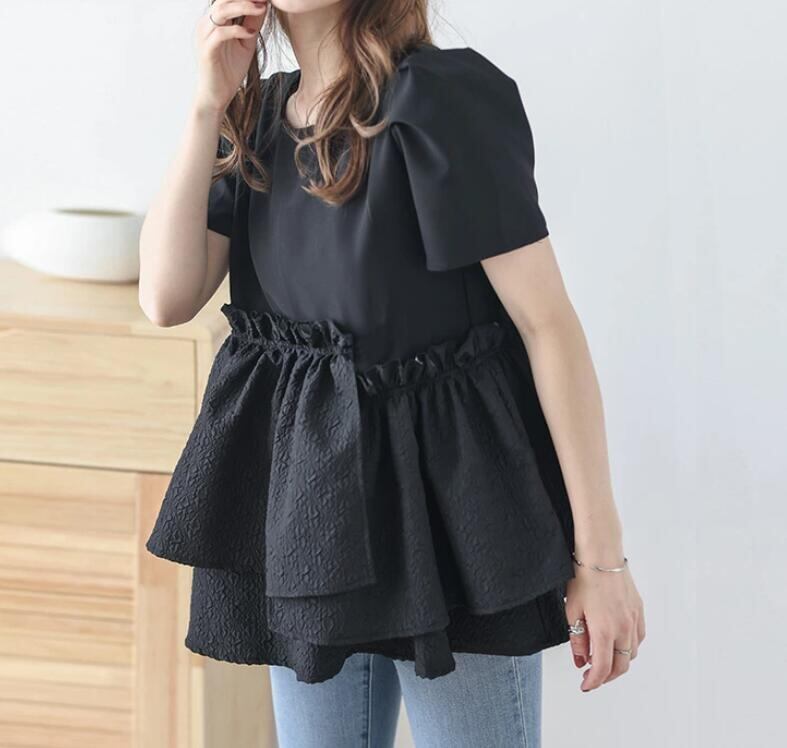 半袖 トップス ジャガード 脚長効果 大人可愛い レディース おすすめ フ