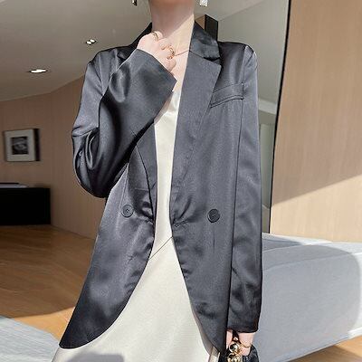 サテンシルク2024春夏レディース新作スーツ襟1つボタン無地ファッショナブルな気質スーツトップジャケット