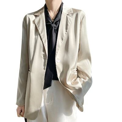 サテンシルク2024春夏レディース新作ラペルミドル丈スタイルデザインワンボタンスーツトップジャケット