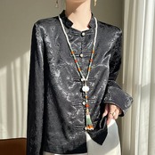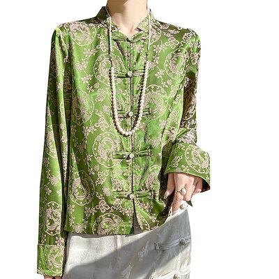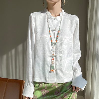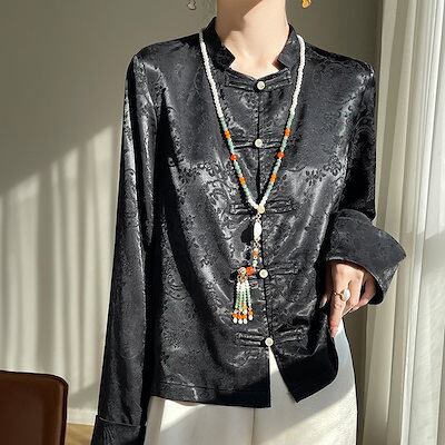 シルクシルク2024春夏レディース新作スタンドカラー新プレートボタン無地プリント気質インナー長袖シャツ