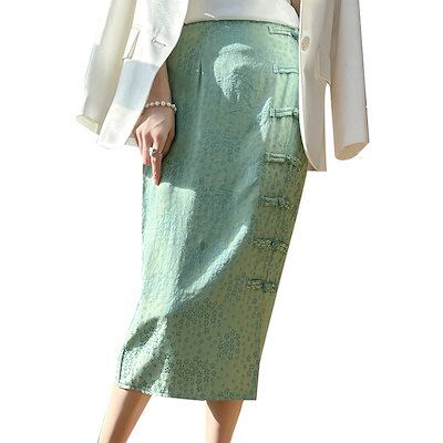 シルクシルク2024春夏レディース新作ミドル丈ハイウエストプリント風ボタンチャイナドレススリットヒップカバーバスト