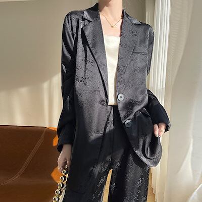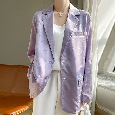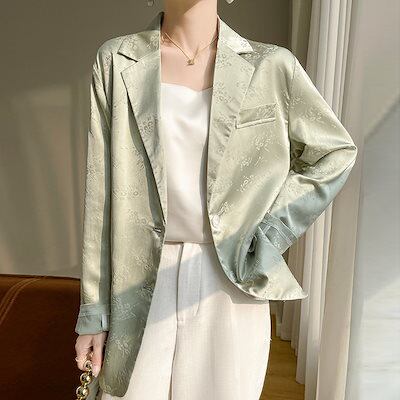 サテンシルク2024春夏レディース新作スーツカラーミドル丈デザイン2つボタンジャガードスーツトップジャケット