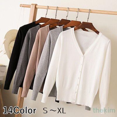 Vネックカーディガン レディース トップス 春 秋 冬 長袖 無地 シンプル 薄手素材 定番 羽織り カラバリ豊富 大人 カジュアル 白 黒 グレーおすすめ商品