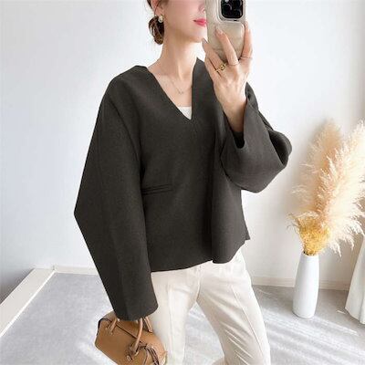 ジャケット レディース トップス Vネック ブラウス ラシャ 春 秋 冬 お洒落 長袖 アウター ニット コート チュニック プルオーバー 抜け感 ショートコート トレンド 着回し ライトアウター フ | KAGEYAMA-SECOND