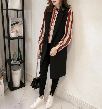 レディース 春 テーラードベスト ロングベスト ロングジレ ノースリーブ オシャレ 春 秋 前開き おしゃれ ジレベスト 大きいサイズ トップス 着回し シンプル カジュアル レイヤード 無地 | KAGEYAMA-SECOND