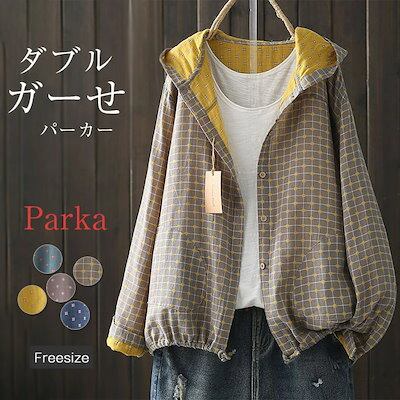 パーカー レディース 長袖 ガーゼパーカー 春 秋 冬 トップス ジャケット ダブルガーゼ 総柄 トップス ボタン 羽織り 紫外線対策 通気性 シンプル アウター カーディガン カジュアル ナチュラル | KAGEYAMA-SECOND