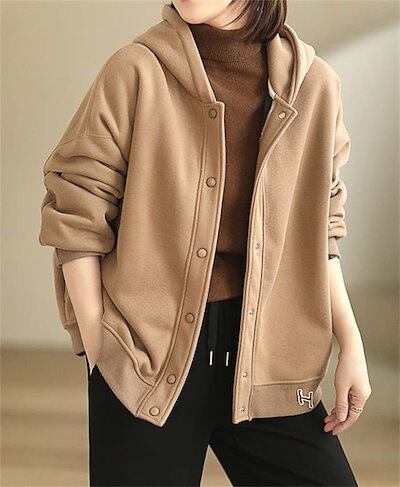 パーカー レディース スウェット トップス 長袖 裏起毛 秋 冬 春 ライトアウター ボタンパーカー ジャケット ブルゾン フード フーディ 羽織り 厚手 裏ボア 防寒 保温 暖か 無地 ゆったり ト | KAGEYAMA-SECOND