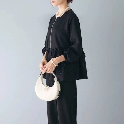 パーカー レディース スウェット トレーナー ジップ ジャケット ノーカラー アウター トップス 前開き 春 秋 冬 長袖 フリル フレア 可愛い 羽織り 通勤 おしゃれ シンプル きれいめ ファスナ | KAGEYAMA-SECOND