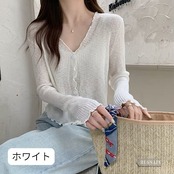 2024 夏 韓国 ライトニット カーディガン トップス 羽織り加工 ショート 薄手 長袖 紫外線対策 UV対策 きれいめ オフィス OLネックカジュアルフレンチフェミニンファッション韓国 レディース | KAGEYAMA-SECOND