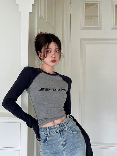 2024春夏 トップス 長袖 可愛い おしゃれ タイトフィット カットソー ラウンドカラー 重ね着丈 スリーブ 女っぽ レディース Tファッション系 フェミニン きれいめ 色っぽ プリント | KAGEYAMA-SECOND