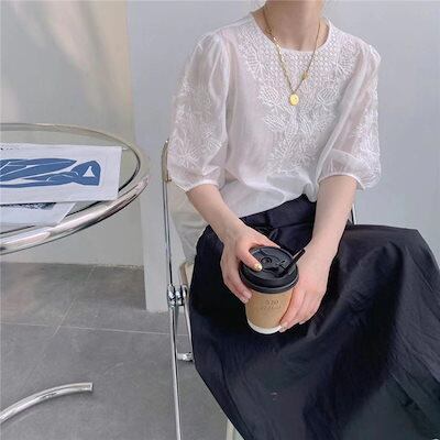 今っぽシアーシャツブラウス新作 おしゃれ 刺繍 レース 半袖 Tシャツ バブル袖 トップスアウター 夏 ロングTシャツ tシャツ 半袖 レディース 気質 着痩せ シアーシャツ | KAGEYAMA-SECOND