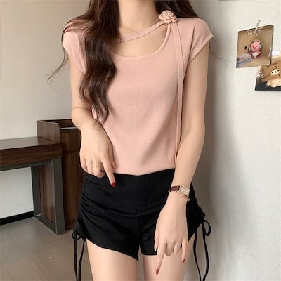 韓国ファッション 着痩せ 夏服 トップス スクエアネックニット ゆったり 半袖Tシャツ tシャツ レディース