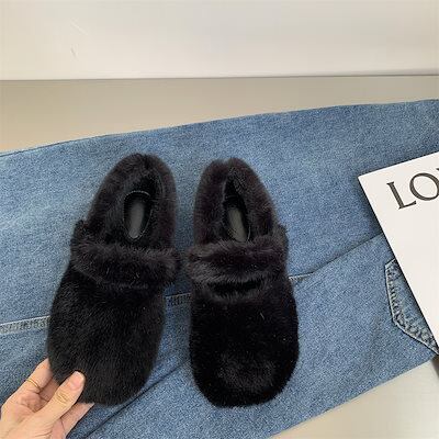 ファーシューズ 靴 モカシン 裏ボアシューズ もこもこ レディース パンプス スリッポン フェイクムートン モカシンシューズ 秋 冬